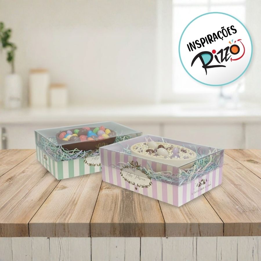 A Caixa New Practice Quinn Composê é prática, resistente e possui visor, ideal para meio ovo de 250g. Com design moderno e elegante, deixa a apresentação mais sofisticada e valorizada.