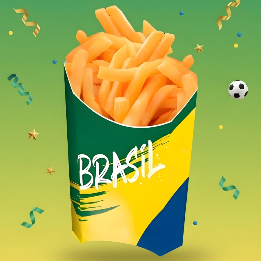 A Caixa para Batata Frita - Brasil Copa do Mundo - 7x9x3,5cm é ideal para servir porções individuais de forma prática e temática durante festas e eventos esportivos. Com visual do Brasil, ela contribui para a ambientação da Copa do Mundo, deixando a mesa mais organizada e alinhada ao clima de torcida.