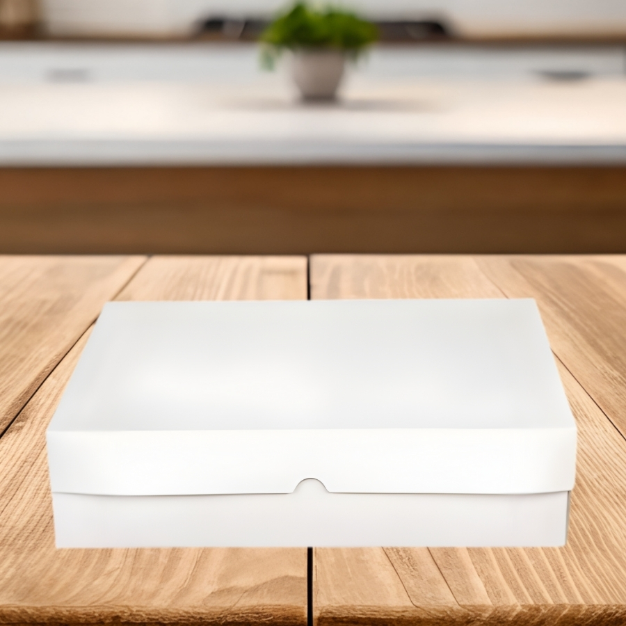 A Caixa Para Bolo Branca - Tamanho B6 - 38x47x12cm é ideal para embalar e transportar bolos com segurança e apresentação adequada. Com visual neutro e acabamento branco, ela valoriza o produto final e atende à necessidade de confeiteiros e consumidores que buscam uma embalagem funcional, resistente e apropriada para bolos de maior porte.