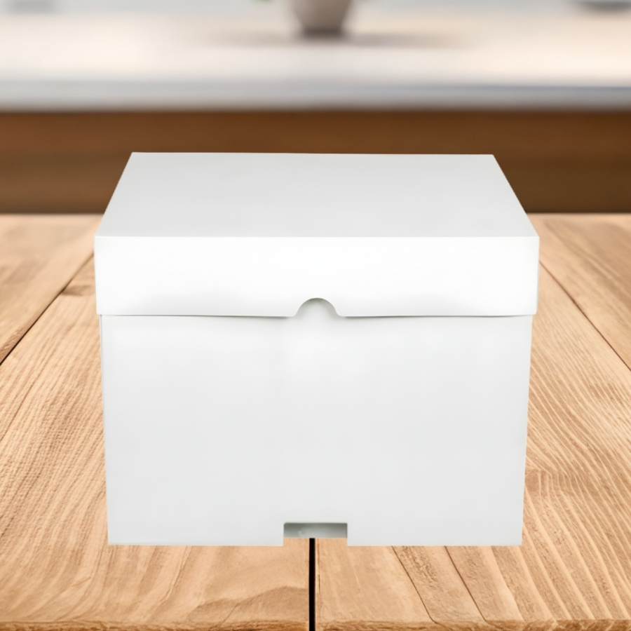 A Caixa Para Bolo Branca Tampa Rígida - CB32-28 - 32x32x25cm é ideal para quem busca uma embalagem resistente e com excelente apresentação para bolos. O acabamento branco aliado à tampa rígida proporciona um visual profissional, valorizando o produto e transmitindo mais segurança no transporte e na entrega.