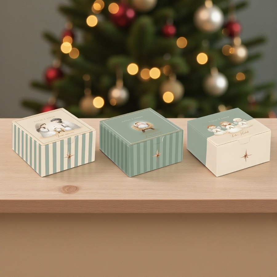 A Caixa para Brigadeiros Belém é ideal para quem deseja apresentar doces de forma sofisticada e temática neste Natal. Seu design elegante e inspirado na cidade de Belém transforma pequenas lembranças em presentes encantadores, perfeitos para encantar amigos, familiares ou clientes.