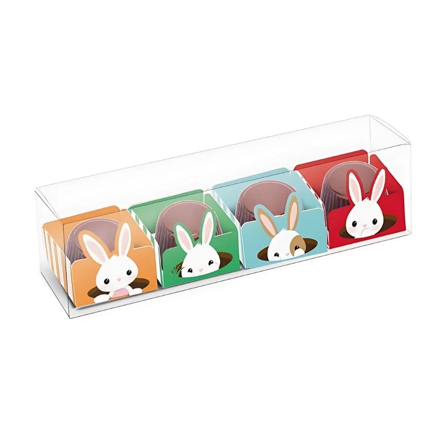 Seu design com estampa de coelhinho saindo da toca traz um toque lúdico e delicado, sendo ótima para uso em festas infantis, ações promocionais ou vendas sazonais. Além de funcional, a caixa é uma maneira charmosa de encantar quem a recebe.