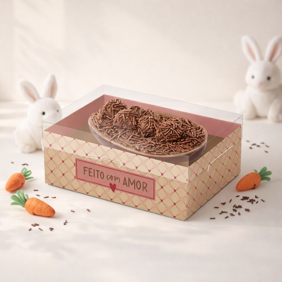 A caixa para meio ovo de páscoa 350g é a embalagem ideal para valorizar e proteger seus doces com charme e profissionalismo. Desenvolvida especialmente para acomodar meio ovo de páscoa recheado, essa caixa para ovo de páscoa oferece ótima apresentação, tornando o produto ainda mais atrativo para presentear ou vender. Além de prática, é perfeita para destacar o capricho da confeitaria e deixar seus ovos de páscoa artesanais ainda mais irresistíveis. Muito utilizada por confeiteiros e empreendedores, a embalagem para meio ovo de páscoa 350g é ideal para montar kits e presentes personalizados. Dentro dela é possível acomodar meio ovo recheado acompanhado de brigadeiros, trufas, bombons, chocolates, balas ou outros docinhos, criando combinações deliciosas e visualmente encantadoras. Também é excelente para presentes de páscoa, lembrancinhas especiais, vendas em confeitarias, docerias e encomendas personalizadas, agregando valor ao produto final.