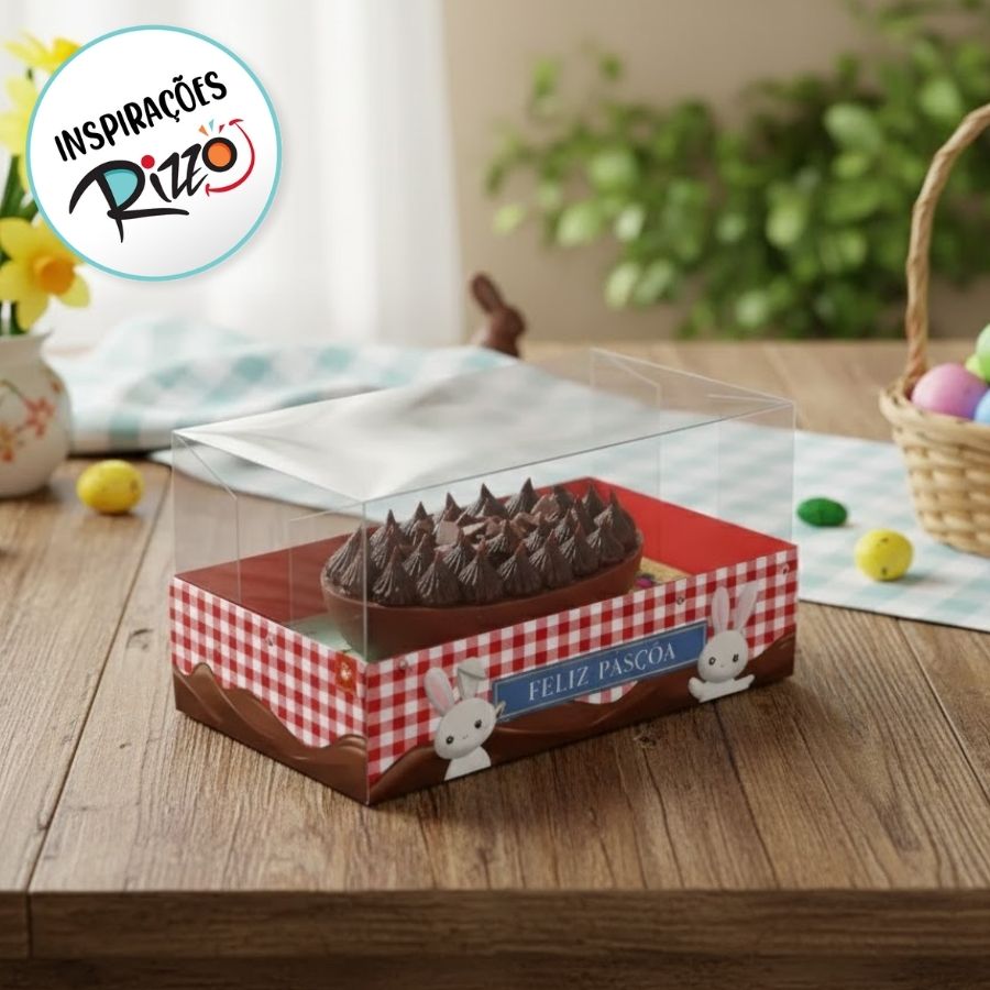 Fabricada em material resistente, possui estrutura firme, encaixe seguro e acabamento de qualidade, garantindo proteção ao ovo de colher e uma aparência profissional. O visual narrativo da linha Contos de Páscoa permite personalizações com laços, tags e elementos decorativos, tornando cada embalagem única e ainda mais especial.