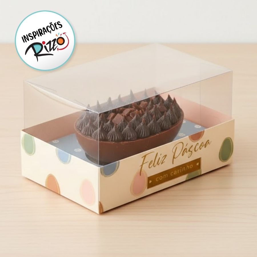 Produzida em material resistente, possui estrutura firme, encaixe seguro e acabamento de alta qualidade, garantindo proteção ao ovo e uma estética profissional. Sua aparência clean permite personalizações com laços, tags e detalhes decorativos, tornando cada embalagem única e especial.