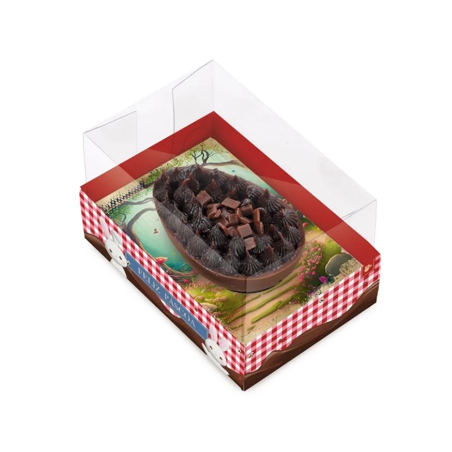 A Caixa para Meio Ovo de Páscoa Horizonte - Contos de Páscoa é a embalagem ideal para apresentar seus ovos de chocolate com charme e elegância. Com um design sofisticado e estampa temática, valoriza ainda mais o seu presente de Páscoa.