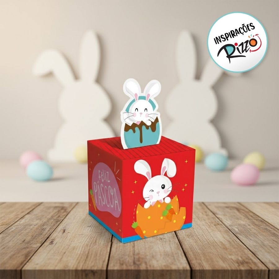 A Caixa Pop Up - Surpresa de Páscoa é uma embalagem decorativa M 9x9x11cm, com abertura pop up, tema de Páscoa, ilustrações festivas e espaço ideal para doces e presentes. Versátil, resistente e perfeita para presentear na Páscoa.