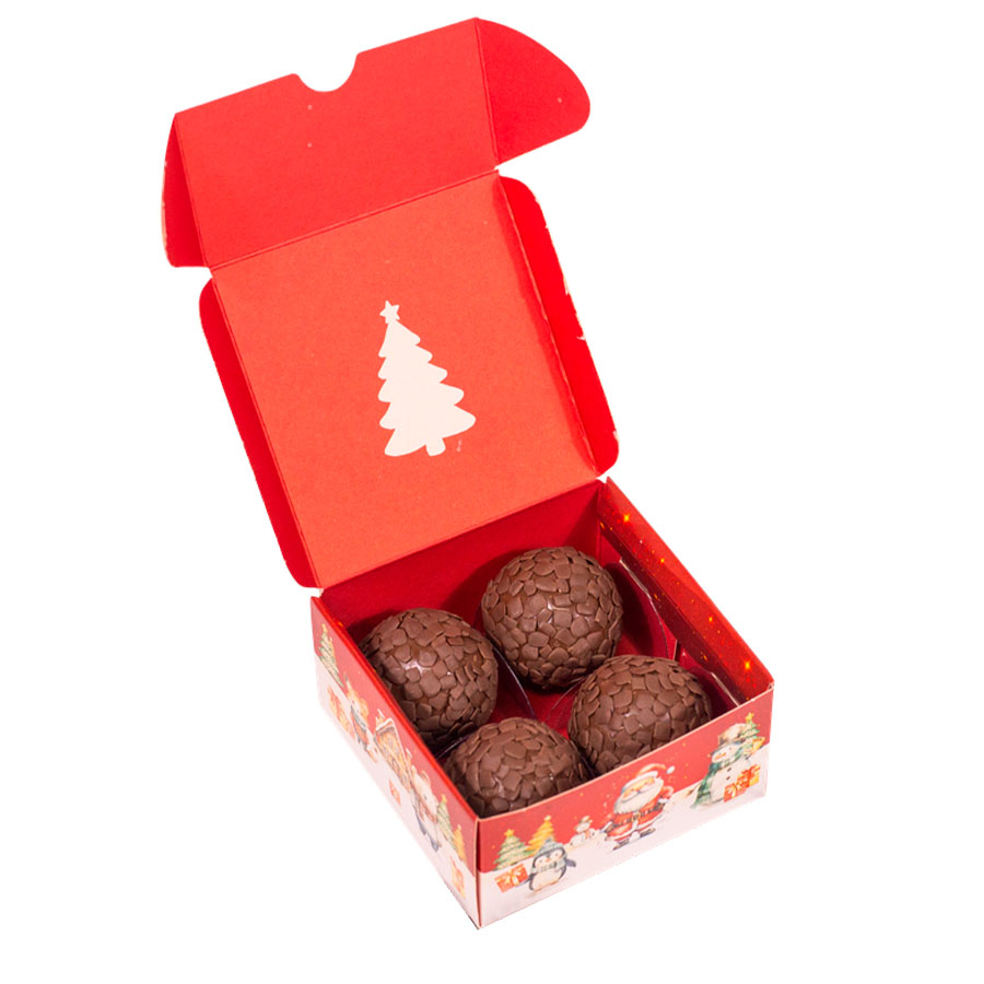 Nossa linha de caixas práticas para Doces, da coleção Natal Encantado, é a escolha perfeita para presentear com muito estilo e sabor nesta época especial. Disponíveis em opções para 4, 6 ou 8 Doces, nossas caixas combinam design moderno e funcional, tornando-as ideais para uma variedade de Doces, como bombons, trufas, brigadeiros e mini bolos.