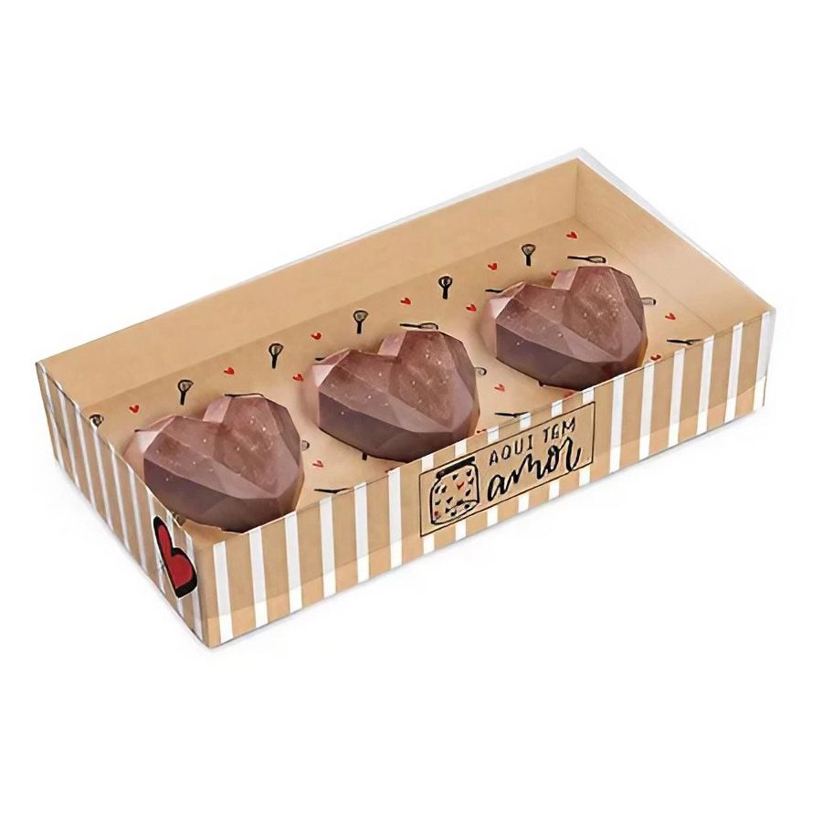 Caixa practice para 3 corações lapidado do tema kraft doçura