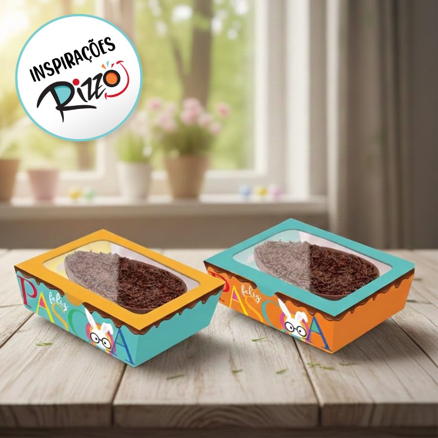 Produzida em material resistente, a Caixa Practice Páscoa Cores garante segurança e firmeza para o meio ovo de 350g, além de praticidade na montagem. Seu formato funcional permite personalizações com fitas, laços, tags e adesivos, agregando ainda mais valor ao produto final. É uma excelente escolha para confeiteiros, chocolaterias e lojistas que buscam uma embalagem prática, colorida e com ótimo custo-benefício.