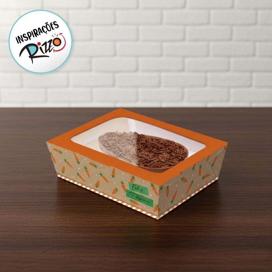 Caixa Practice para Meio Ovo de 500g – Kraft Cenoura é uma embalagem prática, resistente e com um visual encantador inspirado no tema de Páscoa. Produzida em kraft de alta qualidade, ela combina o toque rústico com detalhes ilustrados de cenoura, trazendo charme e personalidade à apresentação do seu ovo de colher ou meio ovo tradicional.