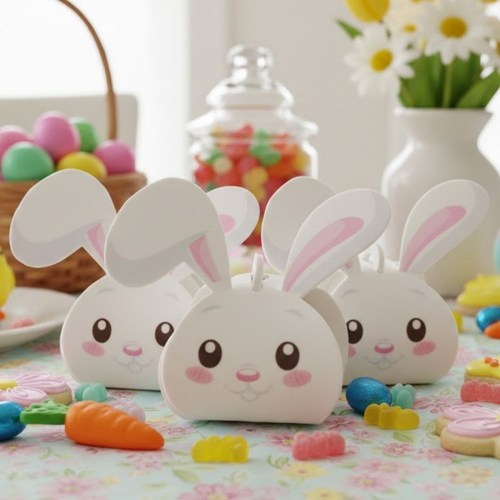O conjunto contém 6 unidades, sendo uma ótima opção para festas infantis, mesas temáticas ou kits personalizados. A caixa de coelho combina facilmente com outros elementos pascais e decorativos, agregando um toque fofo e criativo tanto para uso doméstico quanto comercial.