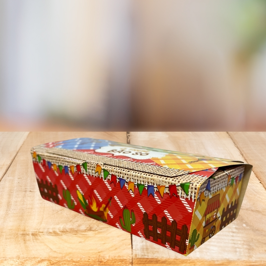 Seu design colorido e festivo remete ao clima alegre das festas juninas, tornando-se uma excelente opção para compor mesas temáticas de arraiás e quadrilhas. Pronta para uso e fácil de montar, essa caixinha é funcional e decorativa ao mesmo tempo.