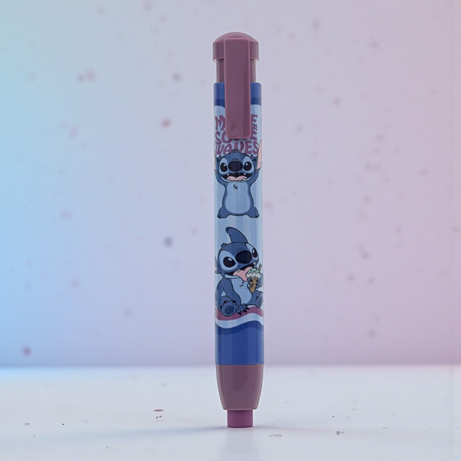 Além da utilidade, a caneta borracha também se destaca pela beleza e pelo apelo decorativo. Combina perfeitamente com lápis Stitch, lapiseira Stitch, caneta Stitch, apontador Stitch e outros itens do mesmo personagem, permitindo montar conjuntos harmoniosos e criativos. É uma ótima opção para uso escolar, organização do material, kits de papelaria fofa, lembrancinhas e brindes temáticos, unindo praticidade e estilo em produtos Licenciado Disney