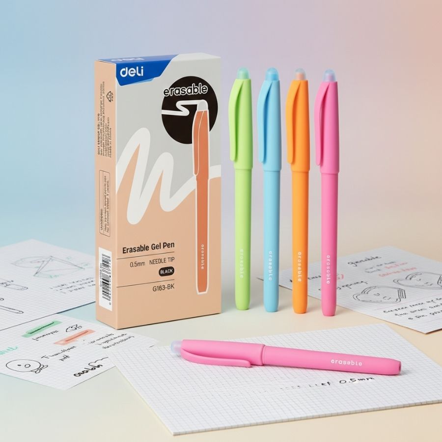 A Caneta Gel Apagável vem em caixa com 12 unidades, oferecendo variedade e praticidade. Ideal para estudantes, professores, profissionais, uso doméstico e também para revenda, combinando qualidade, eficiência, durabilidade e estilo.