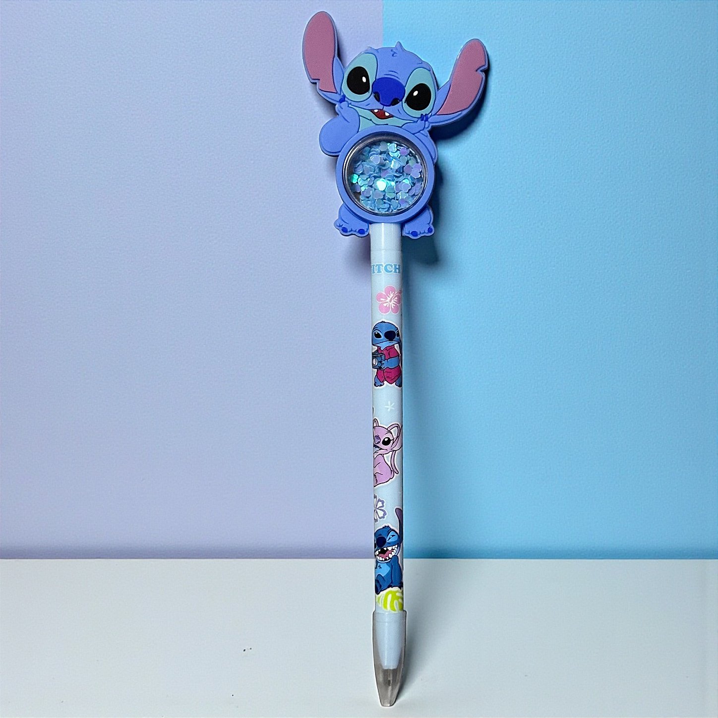 Caneta Stitch Face - Esferográfica Azul Stitch Disney é um item de papelaria que une utilidade e visual encantador para o dia a dia. Com ponta de 1.0mm e escrita azul, é ideal para anotações, estudos, listas e uso contínuo em cadernos e planners. O grande destaque fica por conta do detalhe com confetes de coração no corpo da caneta, que adiciona movimento e um efeito visual super fofo, além do rostinho do personagem emborrachado que valoriza ainda mais o design temático. Um produto perfeito para quem gosta de papelaria criativa e cheia de personalidade.