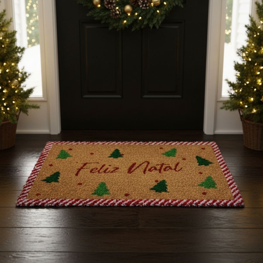 Medindo 60x40cm, esse capacho combina funcionalidade com estilo, proporcionando charme e aconchego ao ambiente. A base em PVC garante aderência ao piso, enquanto a fibra de coco reforça o aspecto natural e elegante. Uma opção prática e diferenciada para decoradores, artesãos e pequenos produtores que buscam oferecer produtos exclusivos de decoração natalina com acabamento de qualidade.