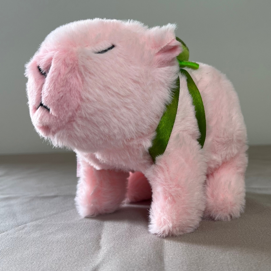 Capivara Eletrônica de Pelúcia Rosa com 15x10,5cm. Funciona com 2 pilhas AA (não inclusas). Ideal para brincar, decorar ou colecionar.