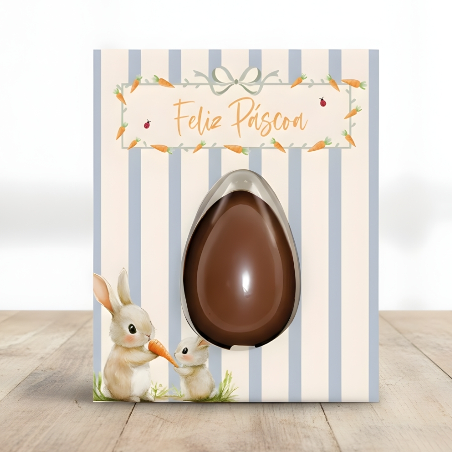 Indicado para confeiteiros, chocolaterias, artesãos e produções personalizadas, este cartão com blister resolve a necessidade de acomodar um ovo de 50g de forma padronizada e visualmente agradável. Seu formato facilita a exposição e a entrega, contribuindo para um acabamento profissional em lembrancinhas e vendas sazonais.