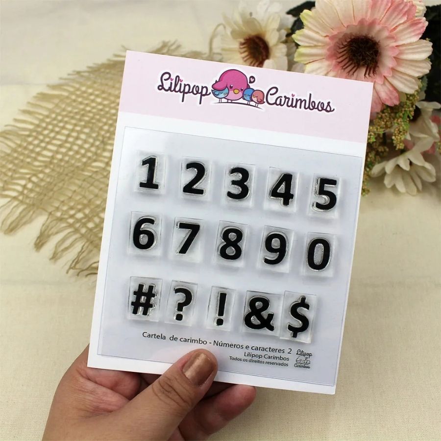 Carimbos artesanais para fins decorativos com numeral de 1 a 0 e caractéres # ? ! & $