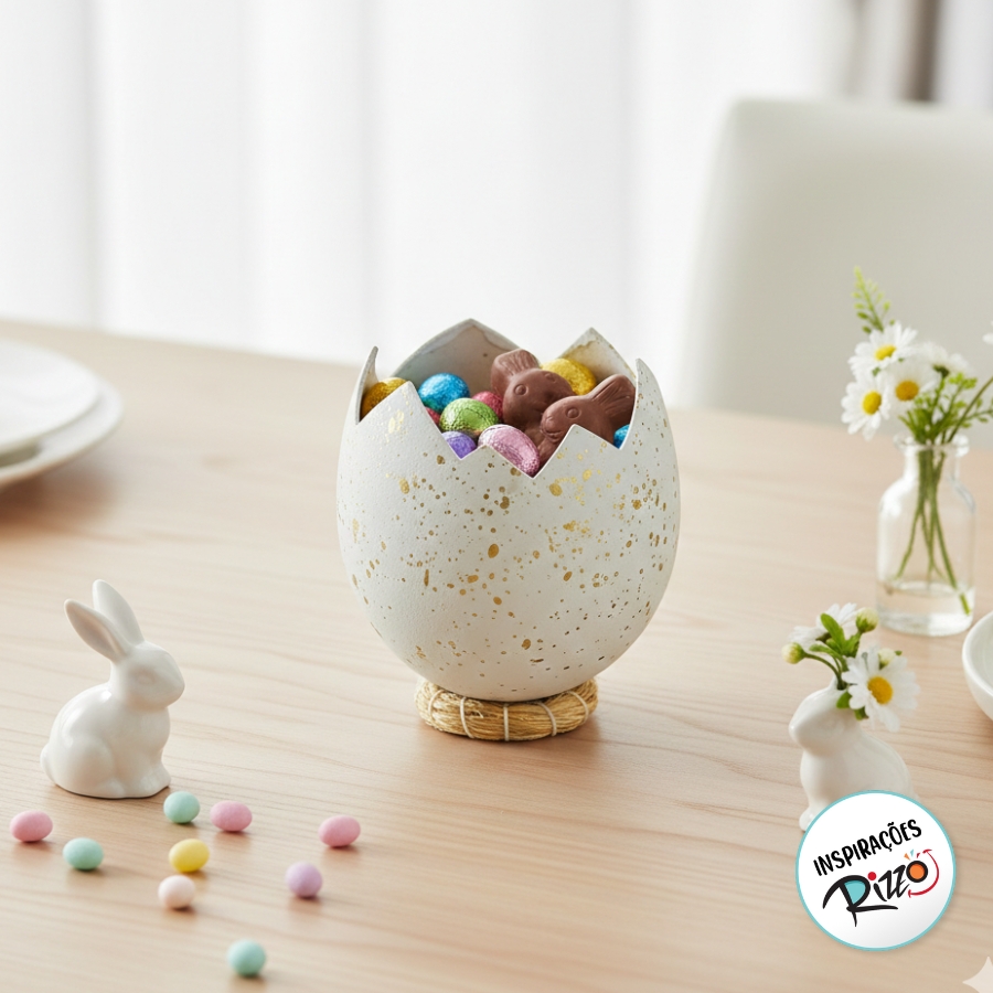 Casca de Ovo de Páscoa Quebrado com Suporte Ninho - Branco - 1 unidade - Cromus - Rizzo Embalagens