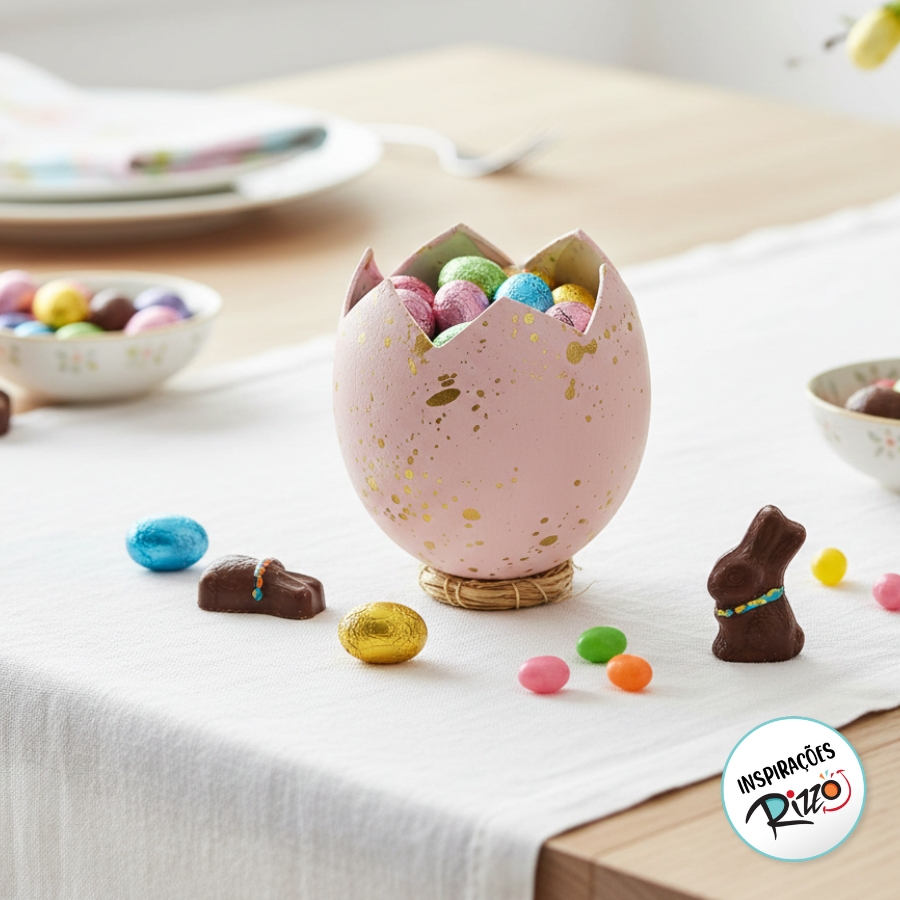 Casca de Ovo de Páscoa Quebrado com Suporte Ninho - Rosa - 1 unidade - Cromus - Rizzo Embalagens