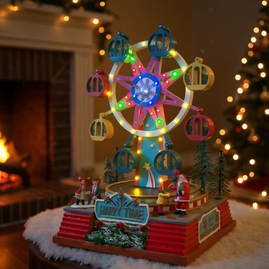 O Cenário de Natal Roda Gigante com som, luz e movimento é uma peça decorativa sofisticada e encantadora, ideal para transformar sua decoração natalina em um verdadeiro espetáculo de cores, som e movimento, produto acompanha fonte e fio USB para alimentação na tomada, BIVOLT.