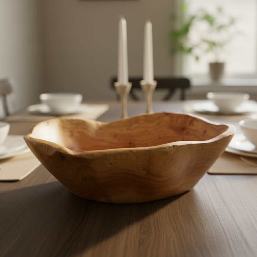 Produzido artesanalmente em madeira natural, este centro de mesa possui medidas aproximadas de 25x29x10cm e apresenta variações exclusivas de cor, veios e formato, o que torna cada peça única. Seu design orgânico combina com ambientes rústicos, modernos ou minimalistas, servindo como elemento decorativo e também como uma excelente opção para presentear. É um item que alia praticidade, estilo e exclusividade para a decoração de qualquer espaço.
