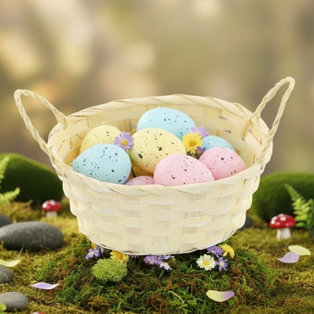 Use a cesta de bambu para acomodar ovinhos de chocolate, doces ou itens decorativos. Combine com outros elementos naturais, como palha e madeira, para criar uma decoração harmoniosa e charmosa.
