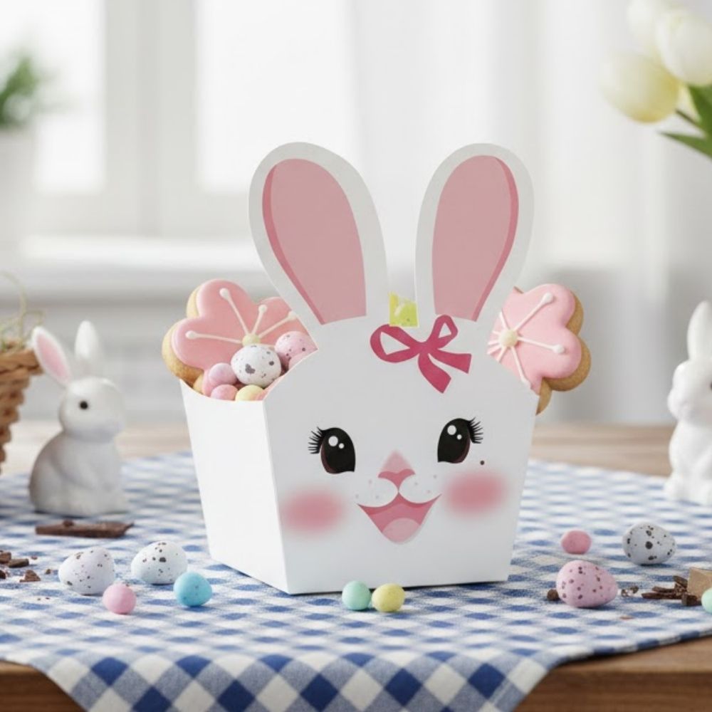 A cestinha para doces Felicita Lola é uma embalagem delicada e encantadora para a Páscoa. Em formato de coelhinha, com orelhinhas, rostinho fofo e detalhes em rosa, ela transmite um visual doce, alegre e perfeito para lembrancinhas afetivas. Compacta, com medidas de 6,5x6,5x4,5cm, é ideal para pequenos presentes cheios de charme.