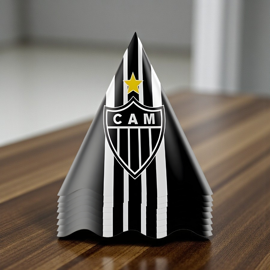 Chapéu decorativo de aniversário no tamanho 16x13cm, inspirado no Atlético Mineiro. Leve, prático e pronto para uso em festas temáticas e comemorações de torcedores.