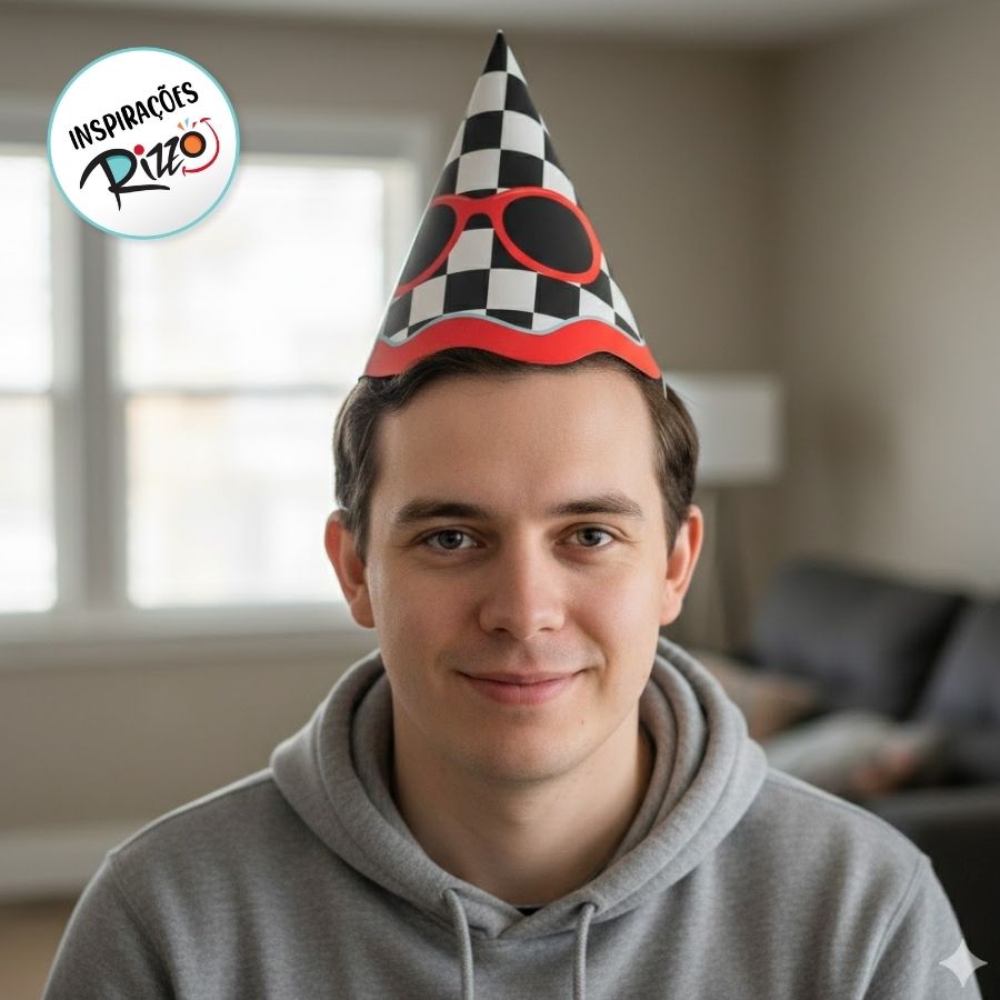 Feito em papel resistente e de fácil montagem, o chapéu é perfeito para aniversários temáticos, sessões de fotos, lembrancinhas e decorações criativas. Pode ser usado tanto por crianças quanto por adultos, garantindo um visual retrô encantador e uma atmosfera animada para a festa.