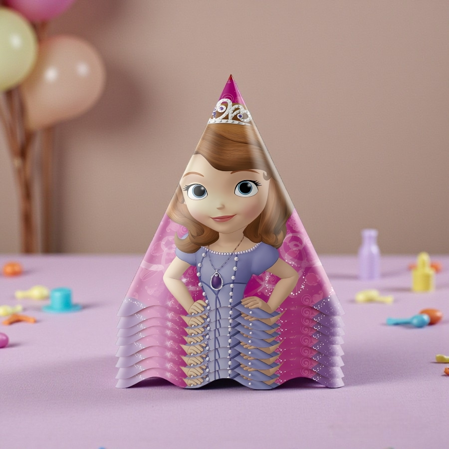 O Chapéu de Aniversário Sofia The First 16x13cm é perfeito para festas infantis encantadoras, trazendo a magia da princesa Sofia para a comemoração. Com cores vibrantes e design temático, torna a celebração ainda mais divertida e memorável para os pequenos.