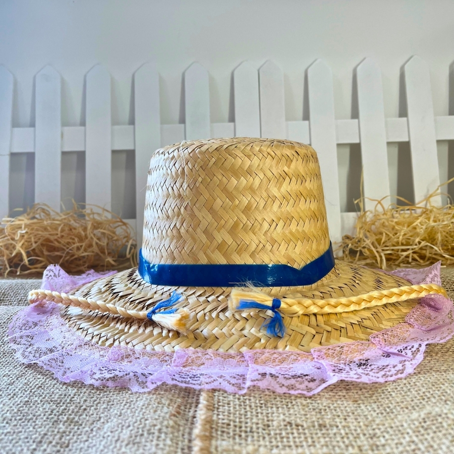 Confeccionado em palha leve e confortável, este acessório é feito artesanalmente, e por isso pode apresentar variações de tonalidade na palha, o que o torna uma peça única. Ideal para festas juninas, julinas, escolares e eventos temáticos, o chapéu garante conforto, estilo e tradição para os pequenos arrasarem na quadrilha.