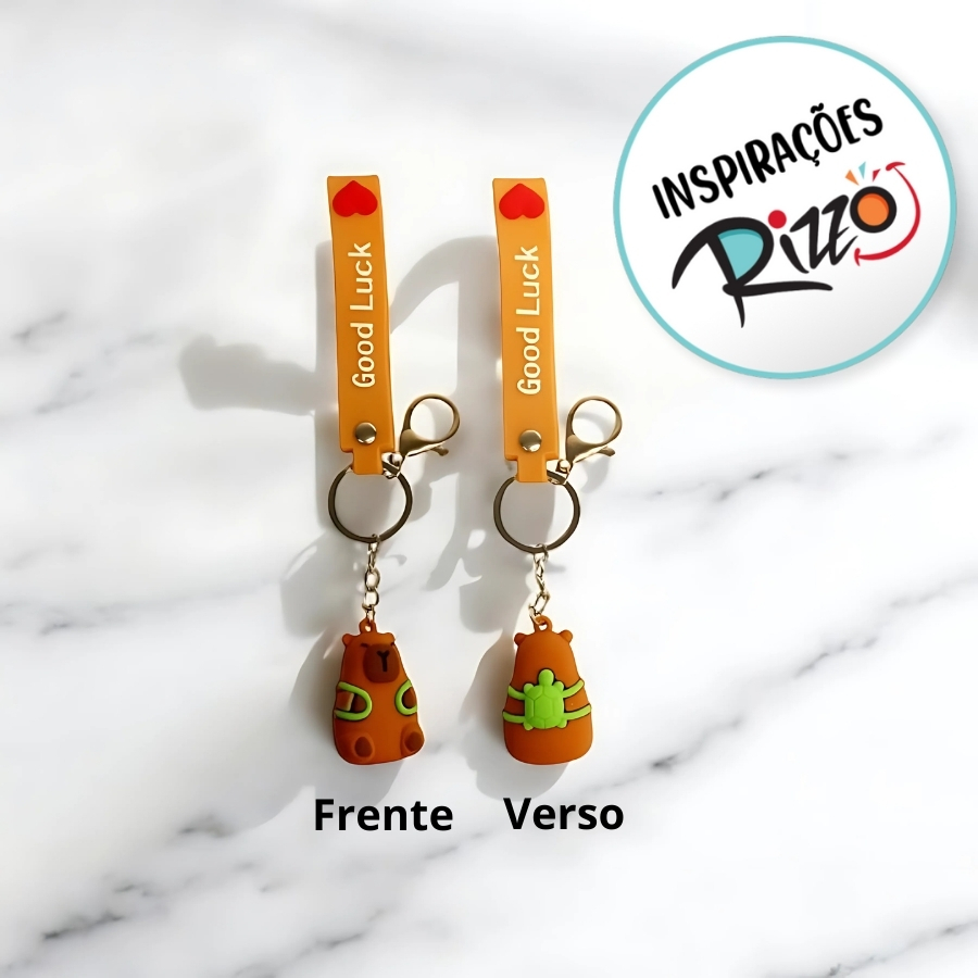 Este chaveiro divertido traz a capivara mais estilosa que você já viu, carregando uma mochila de tartaruga e acompanhada da inscrição "Good Luck" na alça. Feito em material de alta qualidade, é perfeito para quem ama acessórios únicos e com personalidade! Com sua aparência 3D, é ideal para enfeitar suas chaves, mochilas ou bolsas, tornando seu dia a dia ainda mais fofinho e cheio de boas energias!