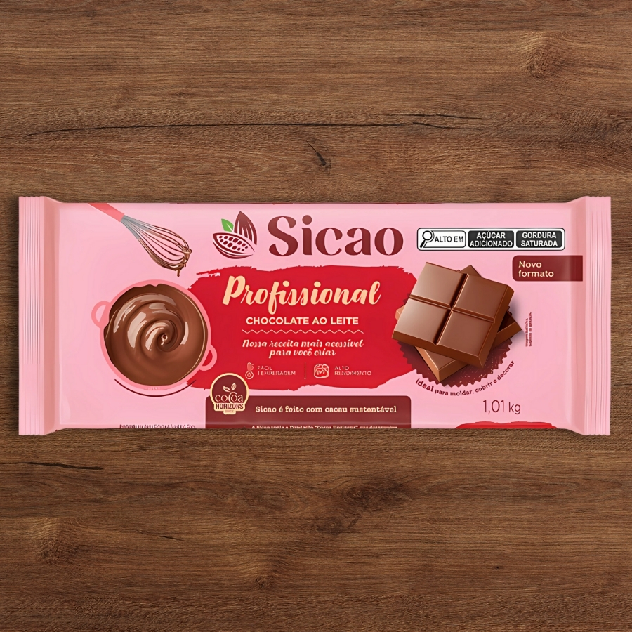 O Chocolate Barra Sicao Profissional – Ao Leite – 1,01 kg é uma opção versátil para quem trabalha com confeitaria, bomboniere, padaria ou produção artesanal de doces e chocolates. Com 1,01 kg de puro sabor, ele é ideal para moldar, cobrir e rechear bolos, trufas, bombons, brownies e outras sobremesas artesanais. Sua cremosidade e sabor equilibrado entre o cacau e o leite integral proporcionam uma experiência sensorial única, conquistando até os paladares mais exigentes.