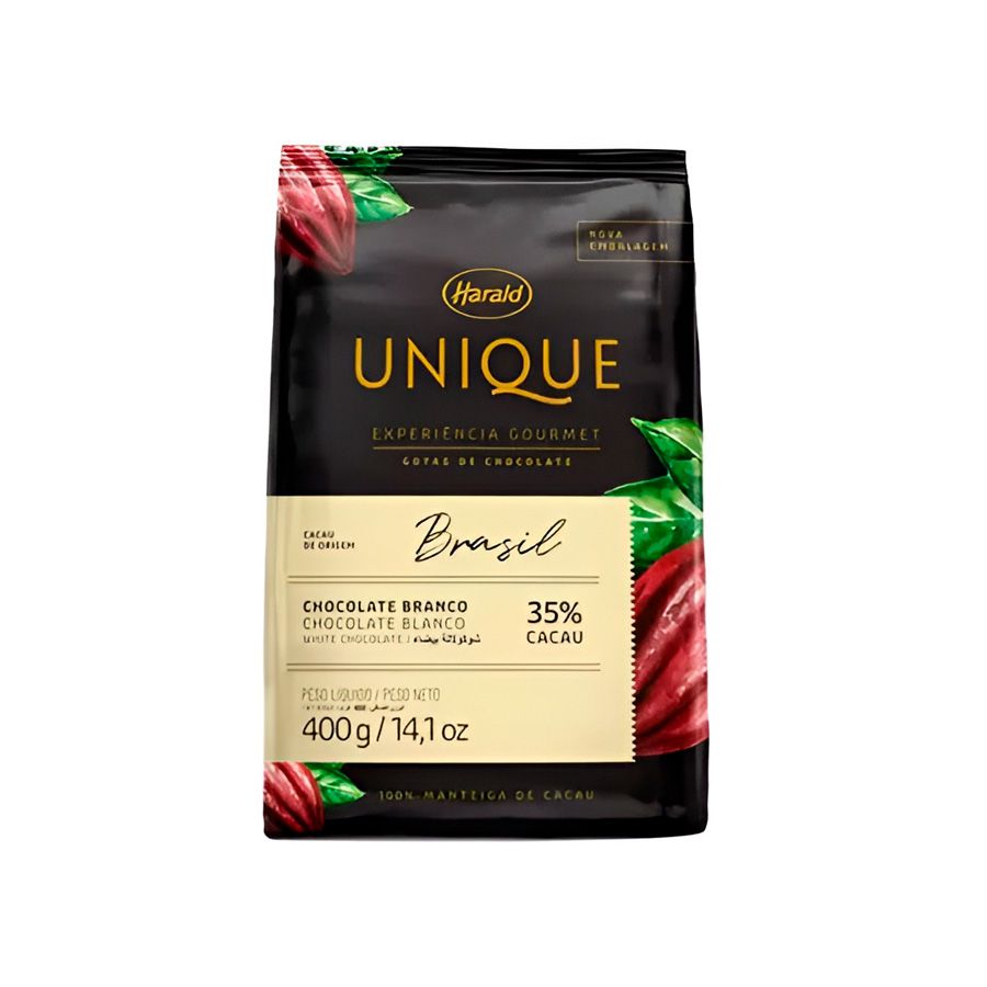 Chocolate branco em gotas unique, cacau de origem Brasil.