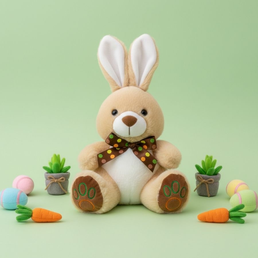 O diferencial do Coelho de Pelúcia com Gravata de Bolinhas está na gravata decorativa com estampa de bolinhas, que confere um visual alegre e sofisticado à peça. A pelúcia de toque suave proporciona conforto visual e sensorial, enquanto o tamanho compacto facilita combinações com outros itens decorativos, embalagens presenteáveis e arranjos personalizados. Versátil e bem acabado, é uma excelente escolha para quem busca valorizar a apresentação final e oferecer um produto com aspecto cuidadoso, profissional e atrativo.