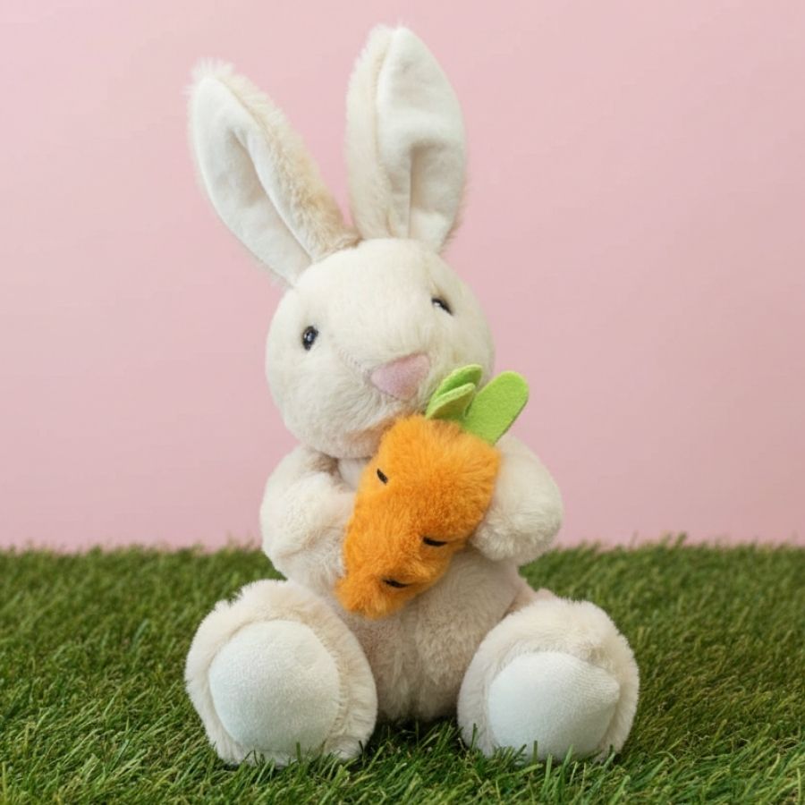 O Coelho de Pelúcia Bege Segurando Cenoura é um item decorativo delicado e encantador para a Páscoa, com acabamento premium e pelúcia tipo pelo de coelho. Seu tom bege transmite aconchego e suavidade, tornando-o perfeito para criar cenários temáticos acolhedores e sofisticados.