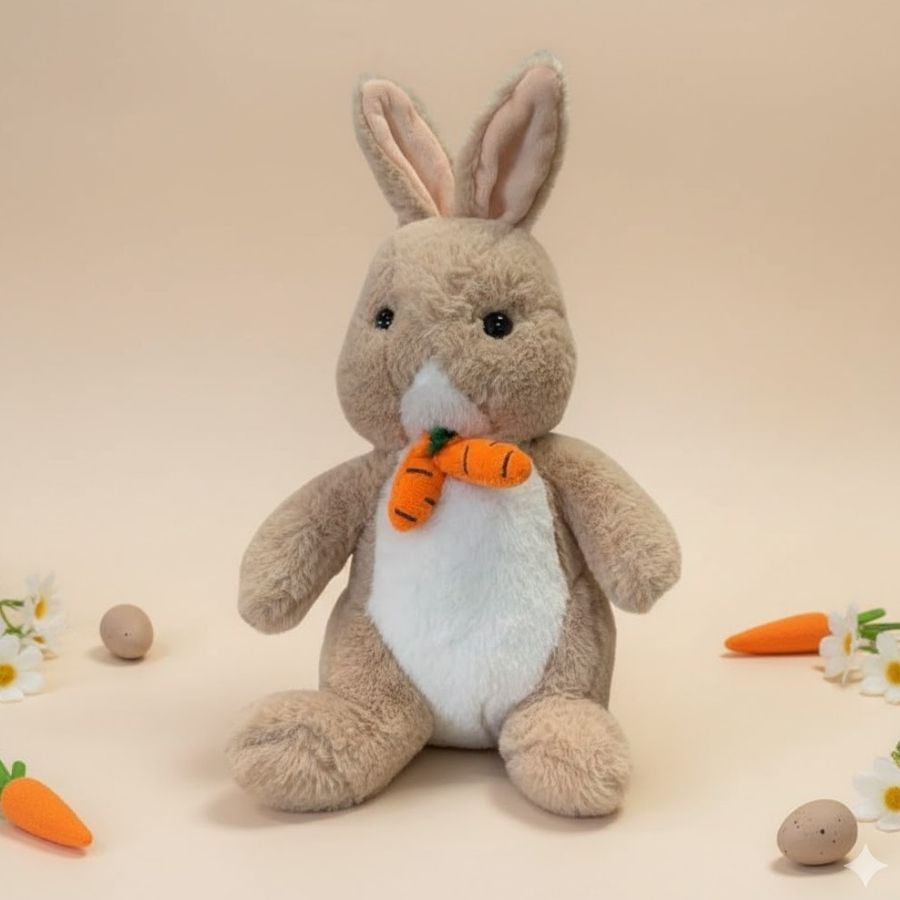 Divertido, carismático e cheio de personalidade, o Coelho de Pelúcia Bege com Gravata de Cenoura é a tradução perfeita da Páscoa alegre e lúdica. O detalhe da gravata em formato de cenoura adiciona um toque criativo e encantador, transformando o coelhinho em um personagem irresistível que conquista adultos e crianças e valoriza qualquer cenário pascal.