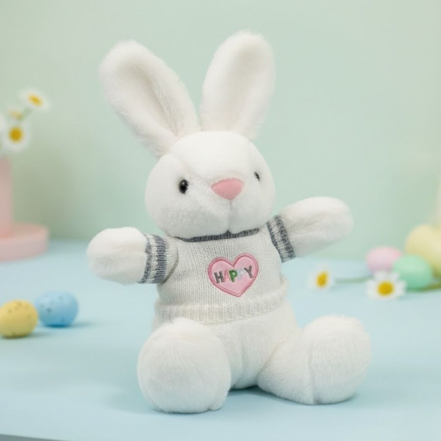 Divertido, lúdico e cheio de encanto, o Coelho de Pelúcia Branco com Blusa “Happy” (Branco e Azul) celebra toda a alegria e fofura da Páscoa. A blusa estampada reforça o clima infantil e alegre, tornando qualquer ambiente mais acolhedor e transformando a decoração em um cenário pascal cheio de ternura e simpatia.