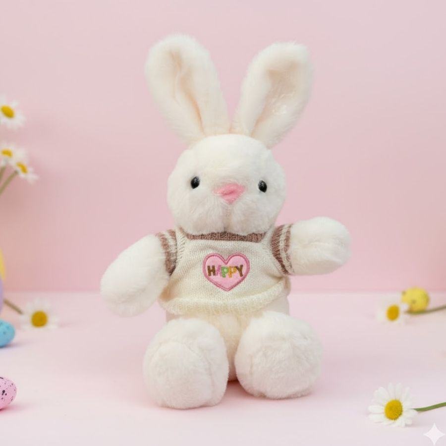 Delicado, lúdico e cheio de encanto, o Coelho de Pelúcia Branco com Blusa “Happy” (Branco e Rosa) traz toda a fofura e alegria da Páscoa. A blusa colorida com detalhe divertido reforça o clima acolhedor e infantil, transformando qualquer ambiente em um cenário pascal encantador e cheio de ternura.