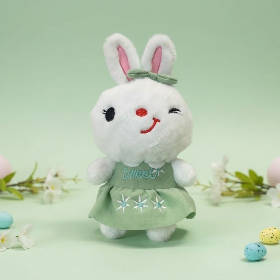 Encanto puro em forma de pelúcia. O Coelho de Pelúcia Branco de Vestido Sweet Verde traduz a delicadeza da Páscoa com um visual doce, leve e cheio de afeto. O vestido em tom verde suave reforça a atmosfera de renovação e alegria típica da data, criando uma peça que desperta ternura instantânea e valoriza qualquer decoração pascal ou presente especial.
