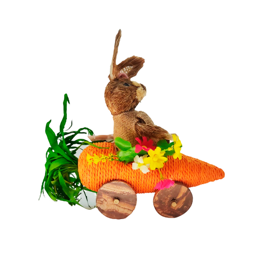 Embarque em uma viagem encantadora com o Coelho em Carro Cenoura. Este item decorativo combina elementos tradicionais da Páscoa com um design divertido e criativo. O coelho, sentado confortavelmente em seu carro cenoura, é uma adição festiva e cativante para qualquer decoração pascoal, adicionando um elemento de diversão e celebração que é certo para encantar visitantes de todas as idades.