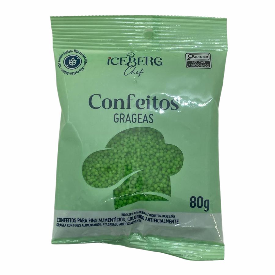 Confeito Colorido Verde Folha, ideal para decorar bolos, cupcakes e sobremesas, proporcionando um toque especial e festivo com 80g de praticidade.