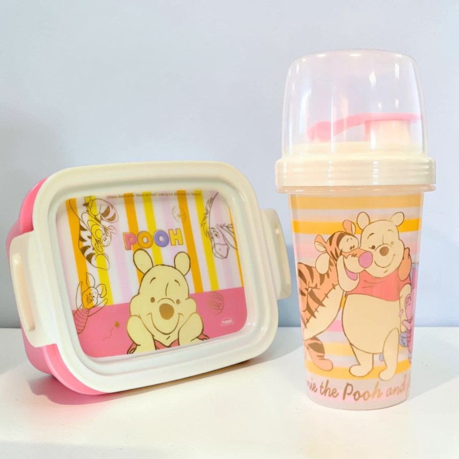 O Conjunto Mini Shakeira e Marmita Hermética - Ursinho Pooh também inclui uma mini shakeira funcional, ideal para preparar e transportar bebidas como sucos, vitaminas ou misturas leves. A shakeira possui peneira interna que auxilia a misturar melhor o conteúdo, além de tampa principal de rosquear que facilita o fechamento e bico com tampa flip para consumo prático no dia a dia. Inspirada em Ursinho Pooh Disney, é uma opção versátil para uso em casa, na escola ou em passeios, podendo ser combinada com outros itens de alimentação e organização para montar kits completos e temáticos.