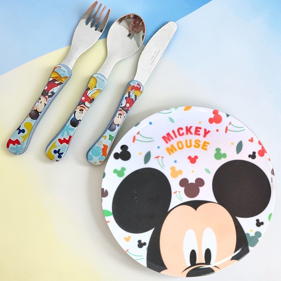 O Conjunto Talheres e Prato Raso - Mickey Mouse também é uma ótima alternativa para montar kits de alimentação infantil inspirados em Mickey Mouse Disney. O prato raso pode ser utilizado em diversas refeições do dia, enquanto o garfo, a colher e a faca ajudam na organização da mesa e no uso diário durante as refeições. O conjunto pode ser combinado com bowls, copos, garrafinhas ou lancheiras temáticas de Mickey Mouse Disney, criando um kit completo para refeições ou lanches. Uma escolha versátil para compor a mesa infantil com utensílios inspirados em personagens.