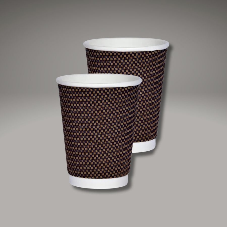 Copo de papel biodegradável de 240ml na cor marrom ondulado, resistente e com barreira interna que evita vazamentos. Ideal para festas juninas, eventos e comemorações que buscam praticidade com apelo sustentável.