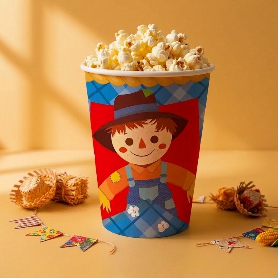 Os copos de papel temáticos de festa junina são perfeitos para compor uma decoração de festa junina alegre e organizada. Produzidos em papel resistente e descartável, eles trazem estampas típicas que remetem ao arraial, festa caipira e quermesse, deixando a mesa mais colorida e temática. Além de práticos, os copos descartáveis para festa junina ajudam a facilitar a limpeza após o evento, sendo ideais para festas com muitos convidados. Esses copos de papel para festa são ideais para servir refrigerantes, sucos, quentão, chocolate quente e outras bebidas de festa. Combinam perfeitamente com mesas de doces juninos, barraquinhas de pipoca, milho, paçoca, pé de moleque e bolo de milho. São muito utilizados em festas escolares, festas infantis, eventos juninos, igrejas e arraiais comunitários, trazendo praticidade na organização e reforçando o clima típico da comemoração.