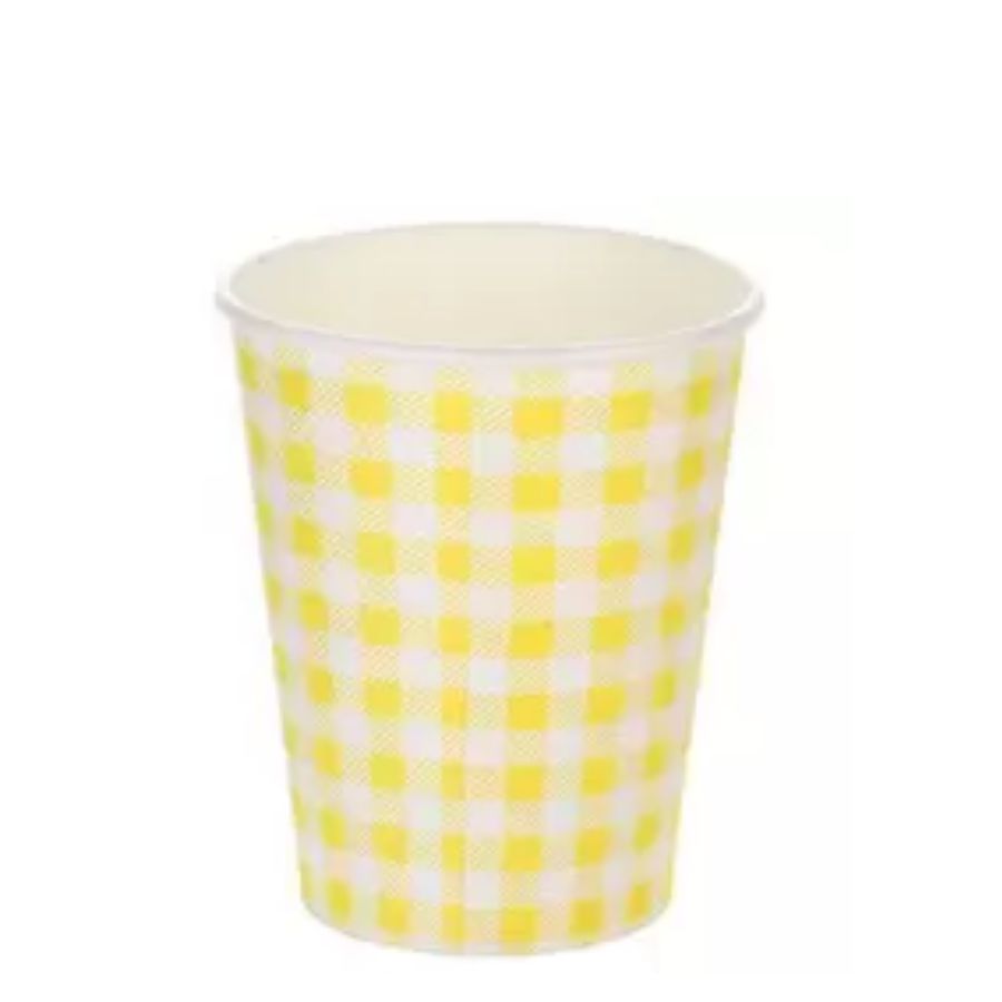 Copo papel Xadrez Junina Amarelo Biodegradável - 10 un - 270 ml - Silver Festas